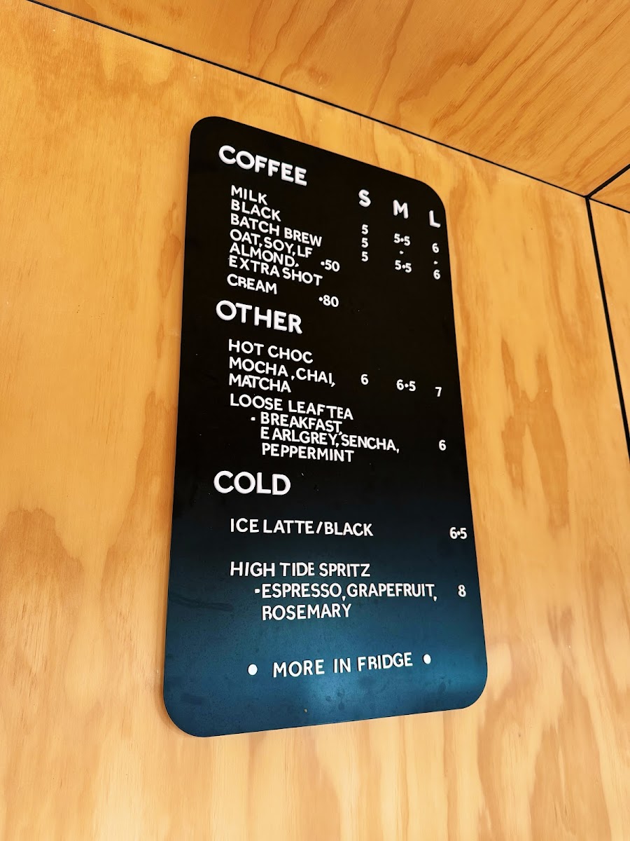 The menu at Tidal Coffee offers a selection of coffee beverages along with light food options suitable for breakfast, coffee breaks, and casual dining. Visitors can expect a variety of hot and cold coffee drinks alongside quick bites that complement the café setting.